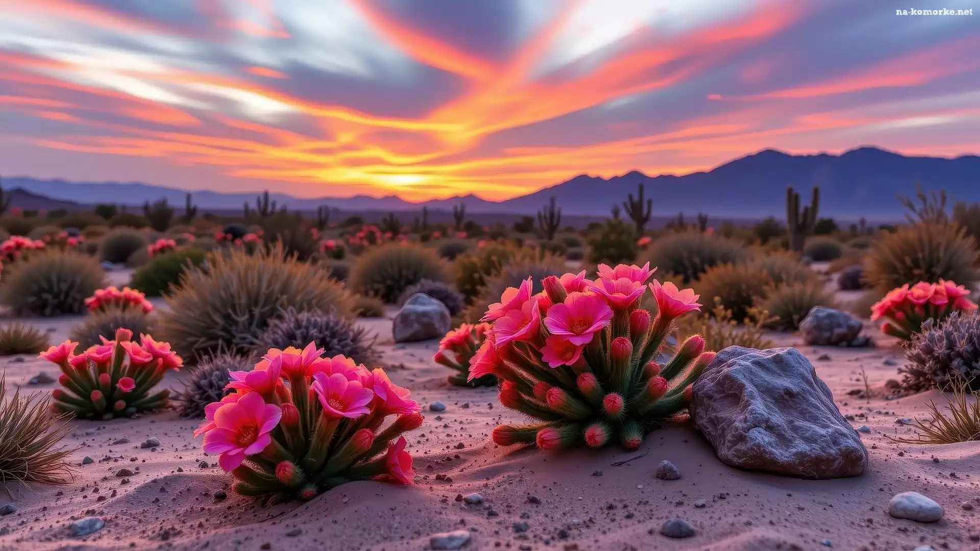 Roślin, Kwiaty, Kamienie, Kaktusy, Kwitnące, Niebo, Kolorowe, Kępki, Góry na Komórkę