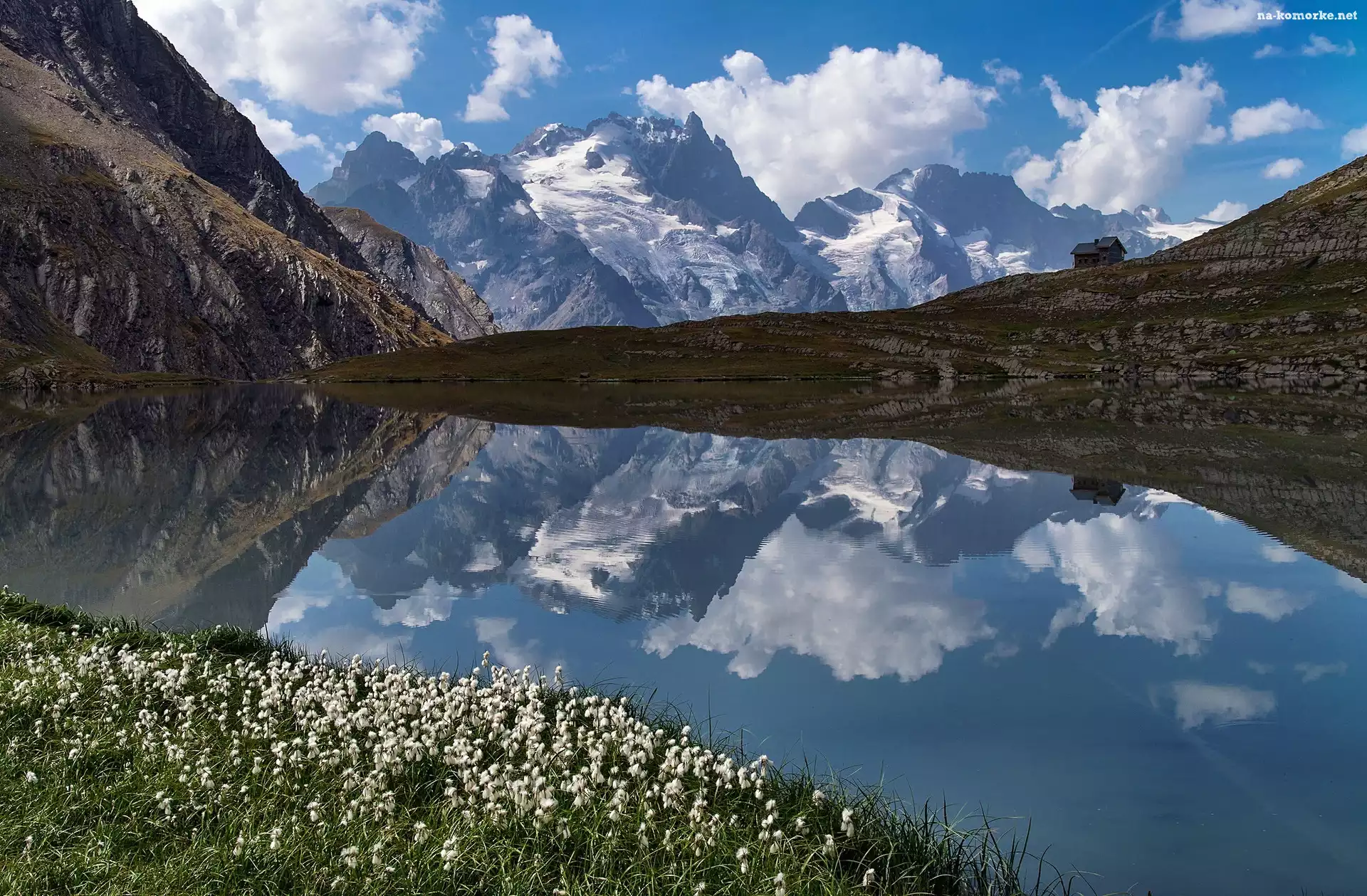 Roślinki, Jezioro, Góry, Odbicie, Białe na Komórkę