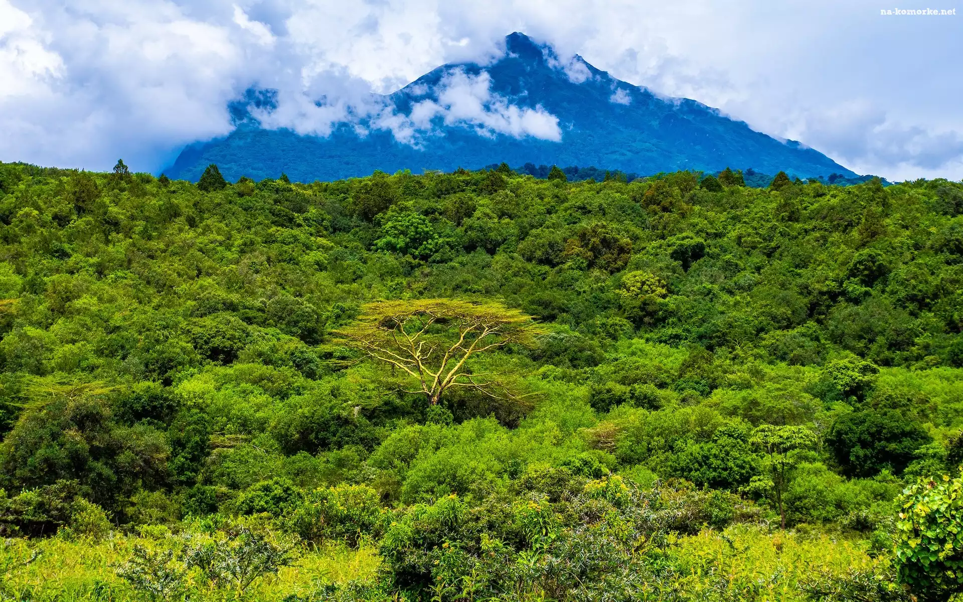 Roślinność, Drzewa, Afryka, Chmury, Park Narodowy Aruszy, Góra, Tanzania na Komórkę