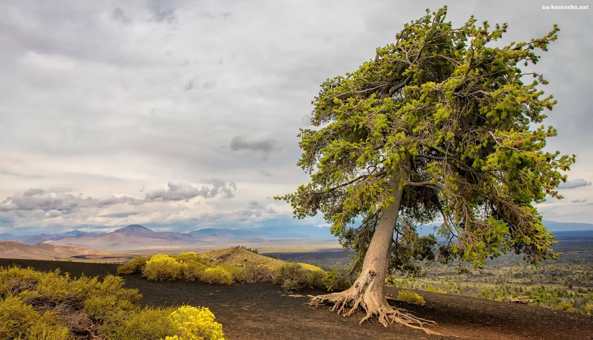 Roślinność, Góry, Drzewo, Droga, Chmury na Komórkę