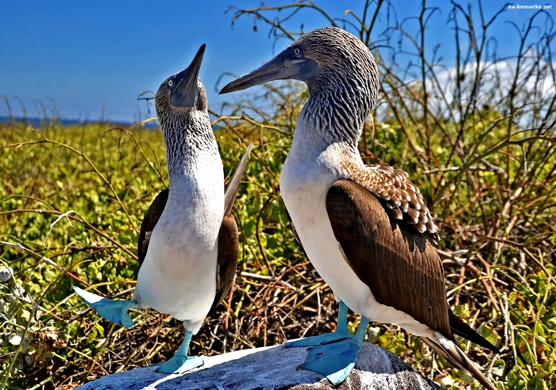 Głuptaki Głuptaki, nogi, niebieskie Dwa, Głuptaki Niebieskonogie, Kamienie Głuptaki, Roślinność, Rozmycie