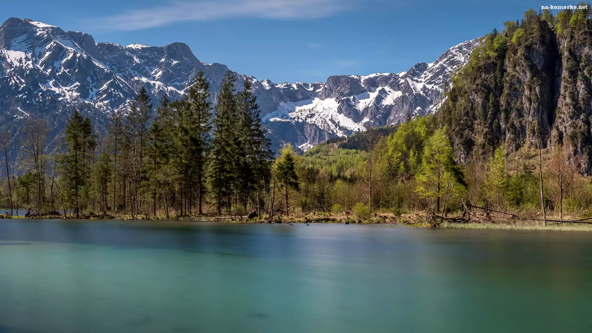 Roślinność, Ośnieżone, Góry, Jezioro, Drzewa na Komórkę