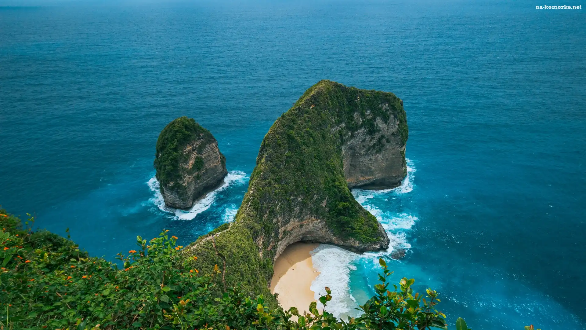 Skały, Nusa Penida, Indonezja, Klif, Plaża Kelingking Beach, Morze, Roślinność na Komórkę