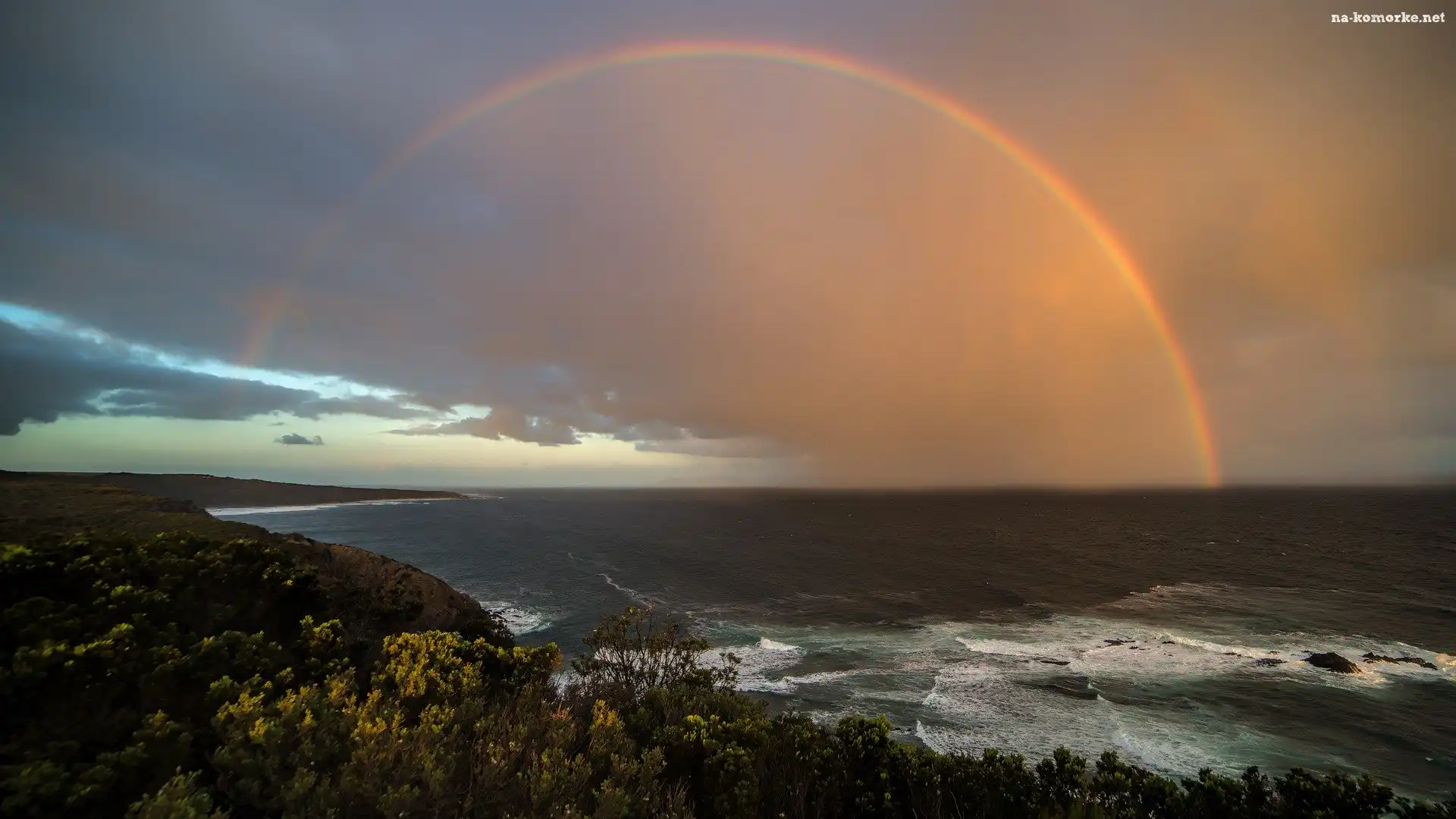 Morze, Roślinność, Niebo, Wybrzeże, Tęcza na Komórkę