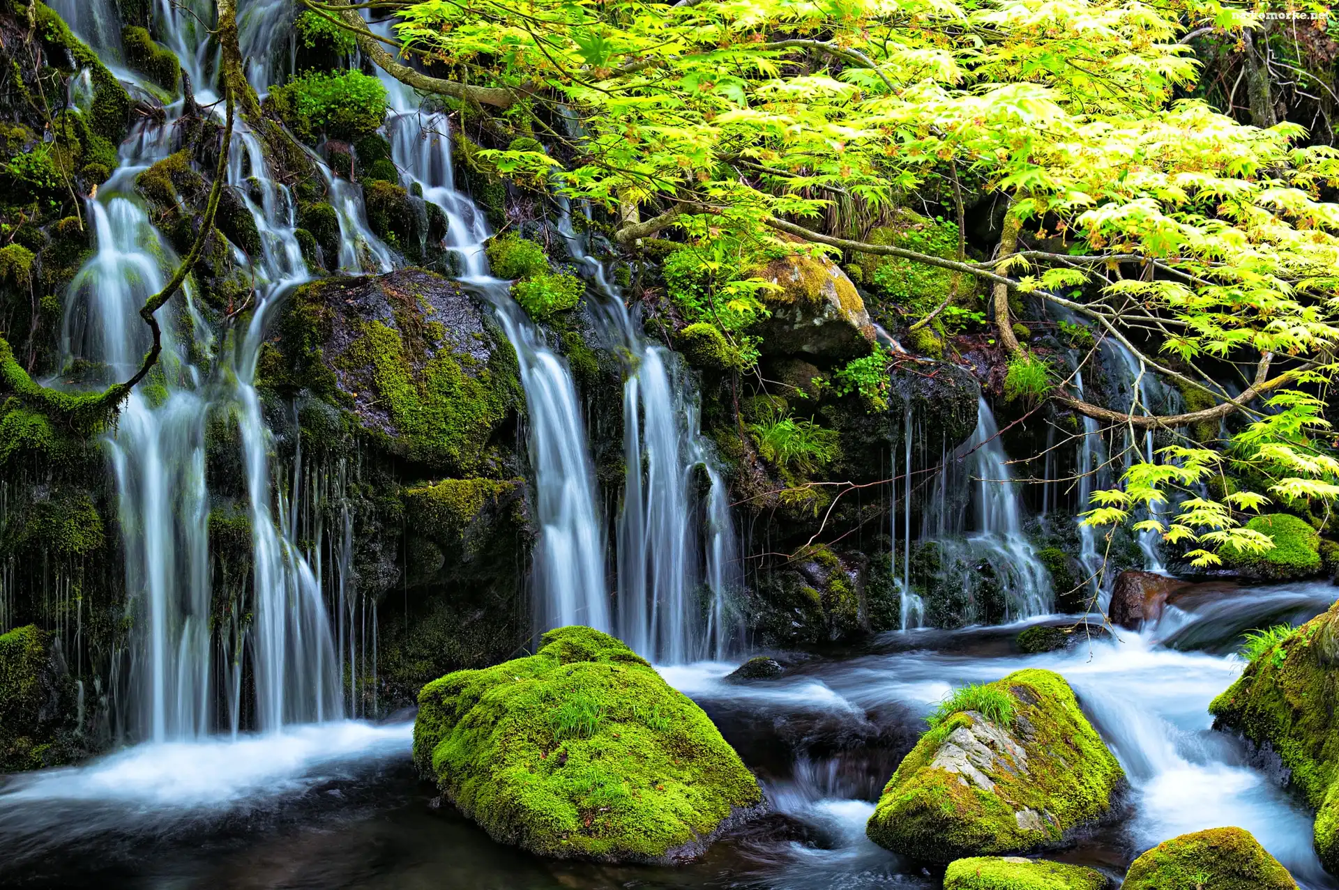 Roślinność, Wodospad, Skały, Omszone, Kamienie na Komórkę