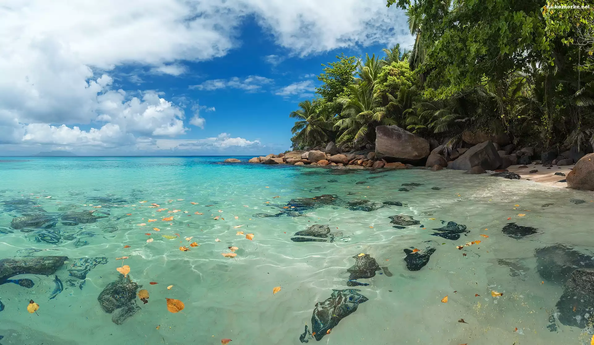 Seszele, Roślinność, Chmury, Wyspa Mahe, Morze, Głazy, Palmy na Komórkę