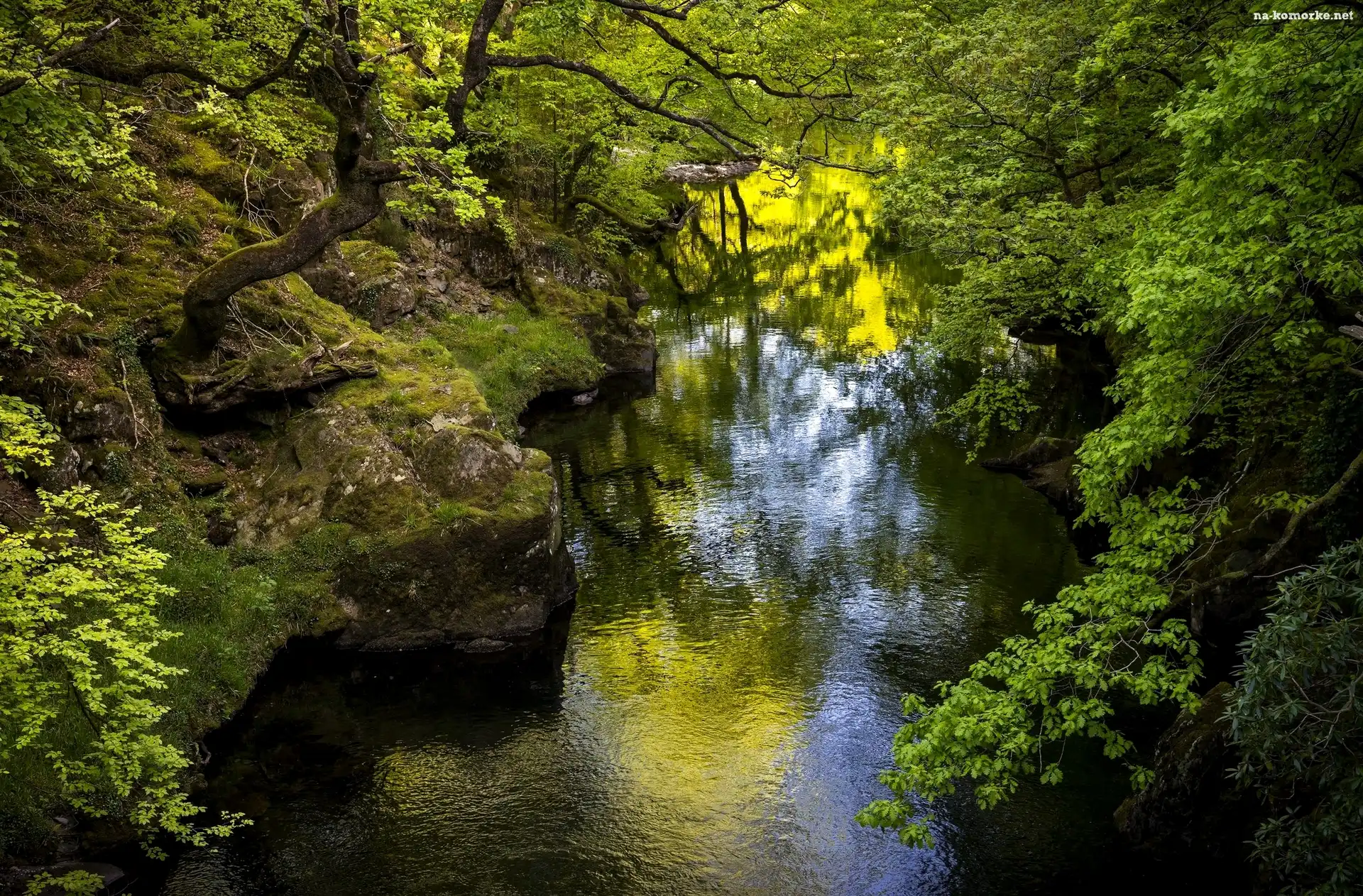Roślinność, Las, Rzeka, Skały, Drzewa na Komórkę
