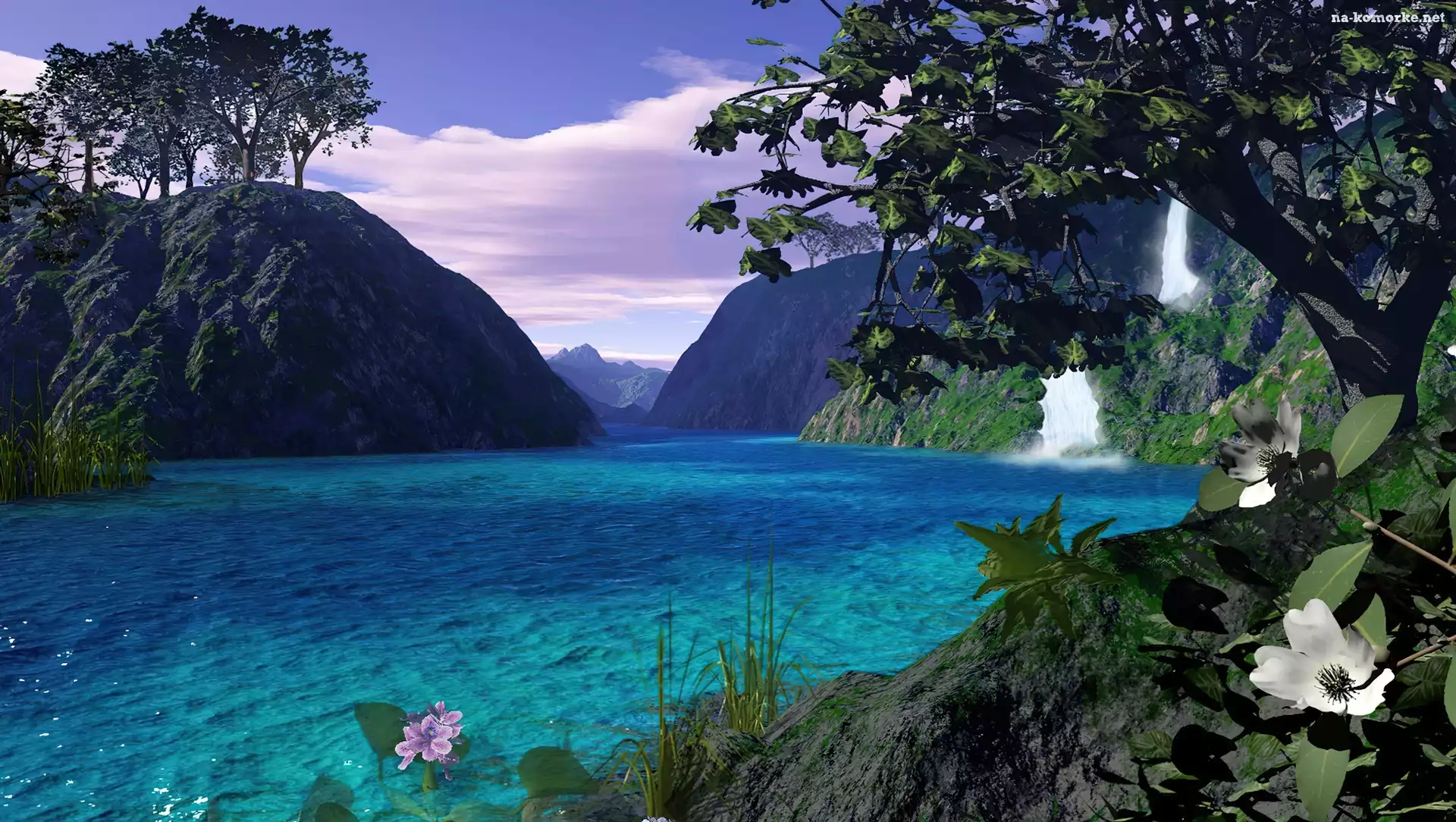 Roślinność, Turkusowe, Jezioro, Wodospad, Góry na Komórkę