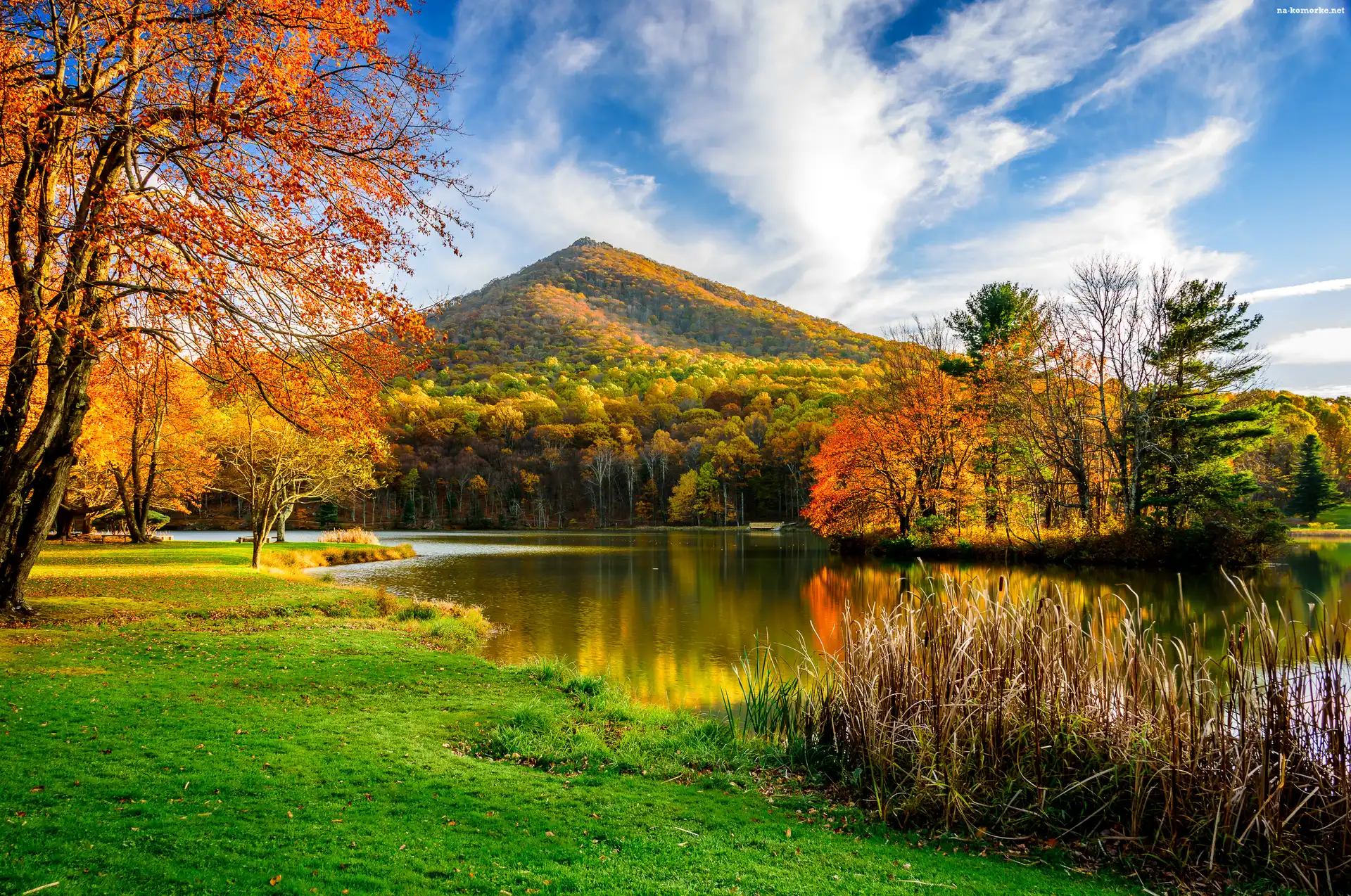 Roślinność, Rzeka, Jesień, Wzgórza, Drzewa na Komórkę