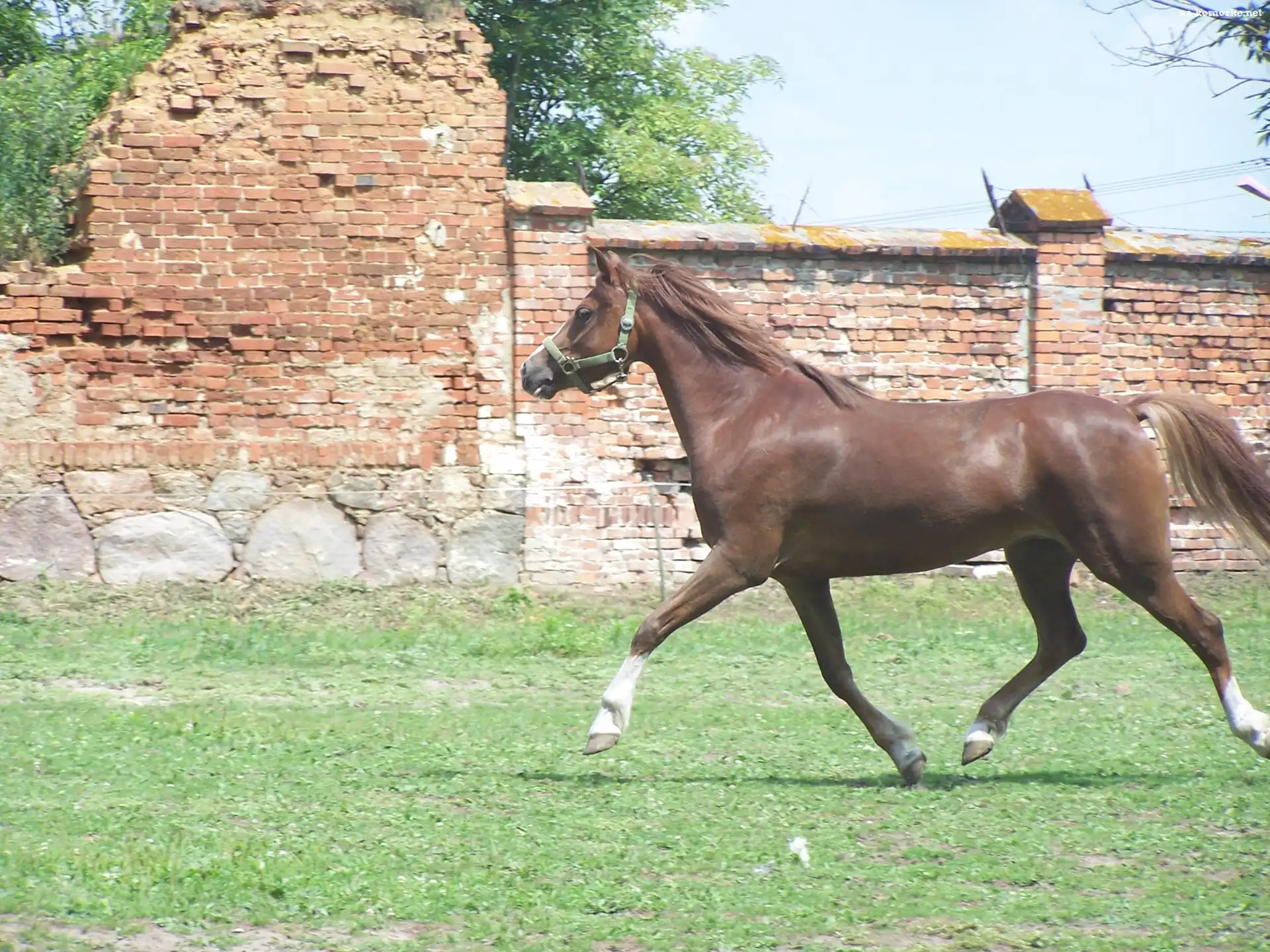 rośliny, koń, mur, budowla, trawa na Komórkę