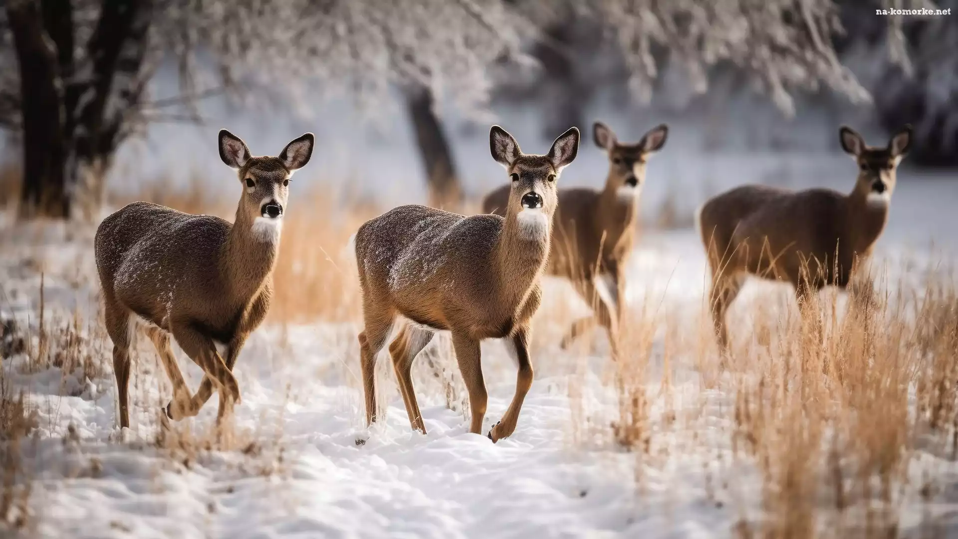 Suche, Zima, Śnieg, Rośliny, Sarny, Cztery na Komórkę