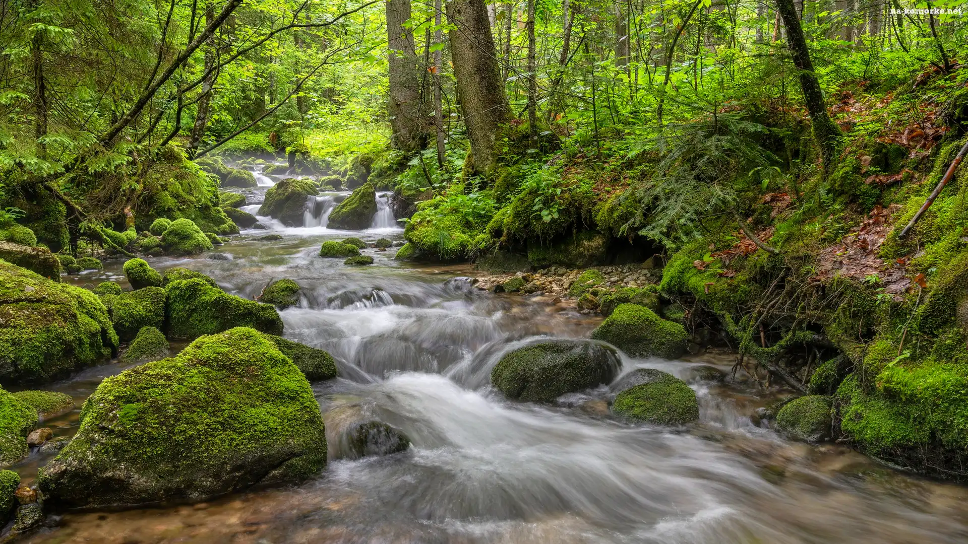 Kamienie, Las, Omszone, Rośliny, Rzeka, Drzewa na Komórkę