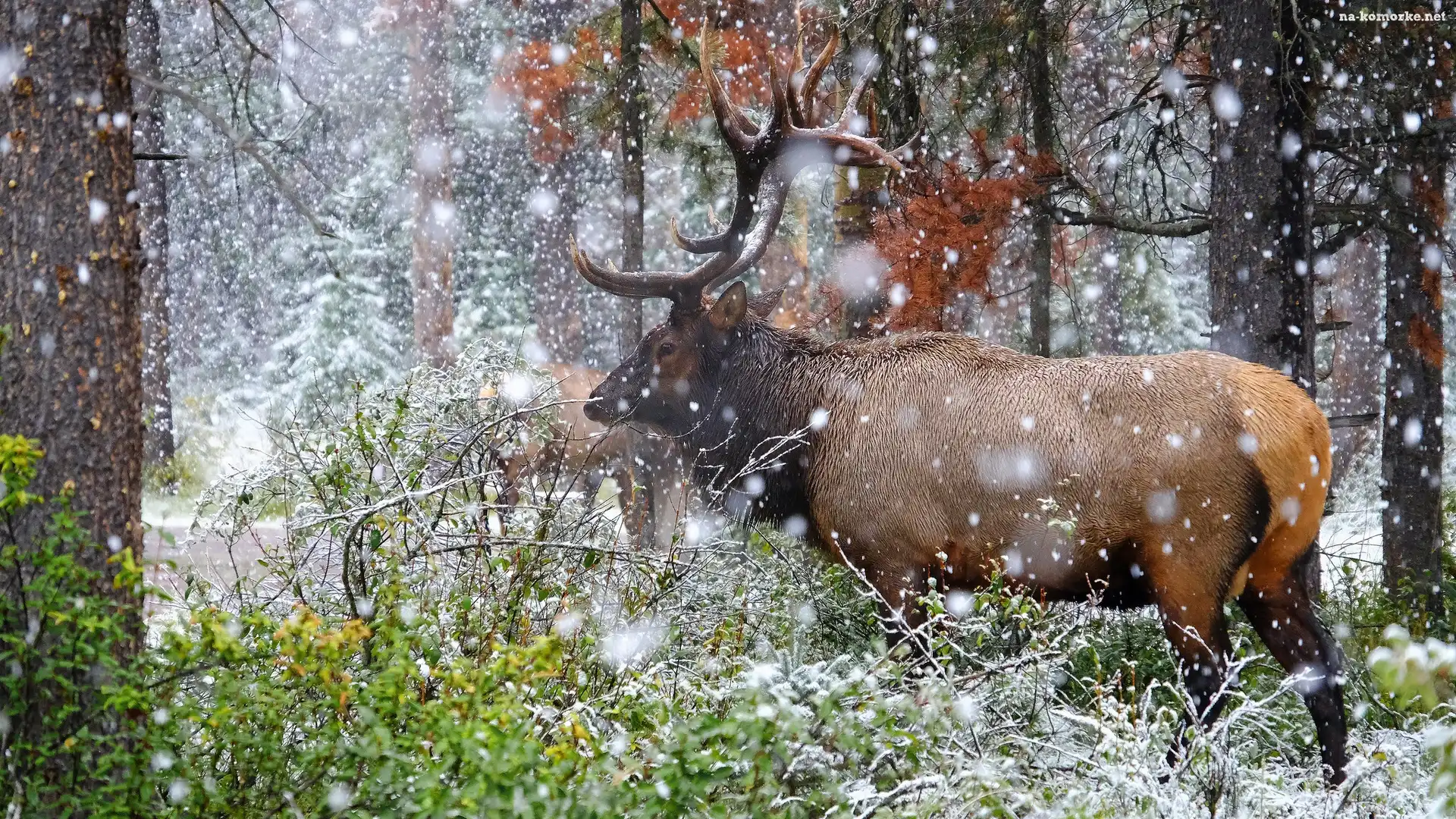Śnieg, Jeleń, Las, Rośliny, Padający na Komórkę