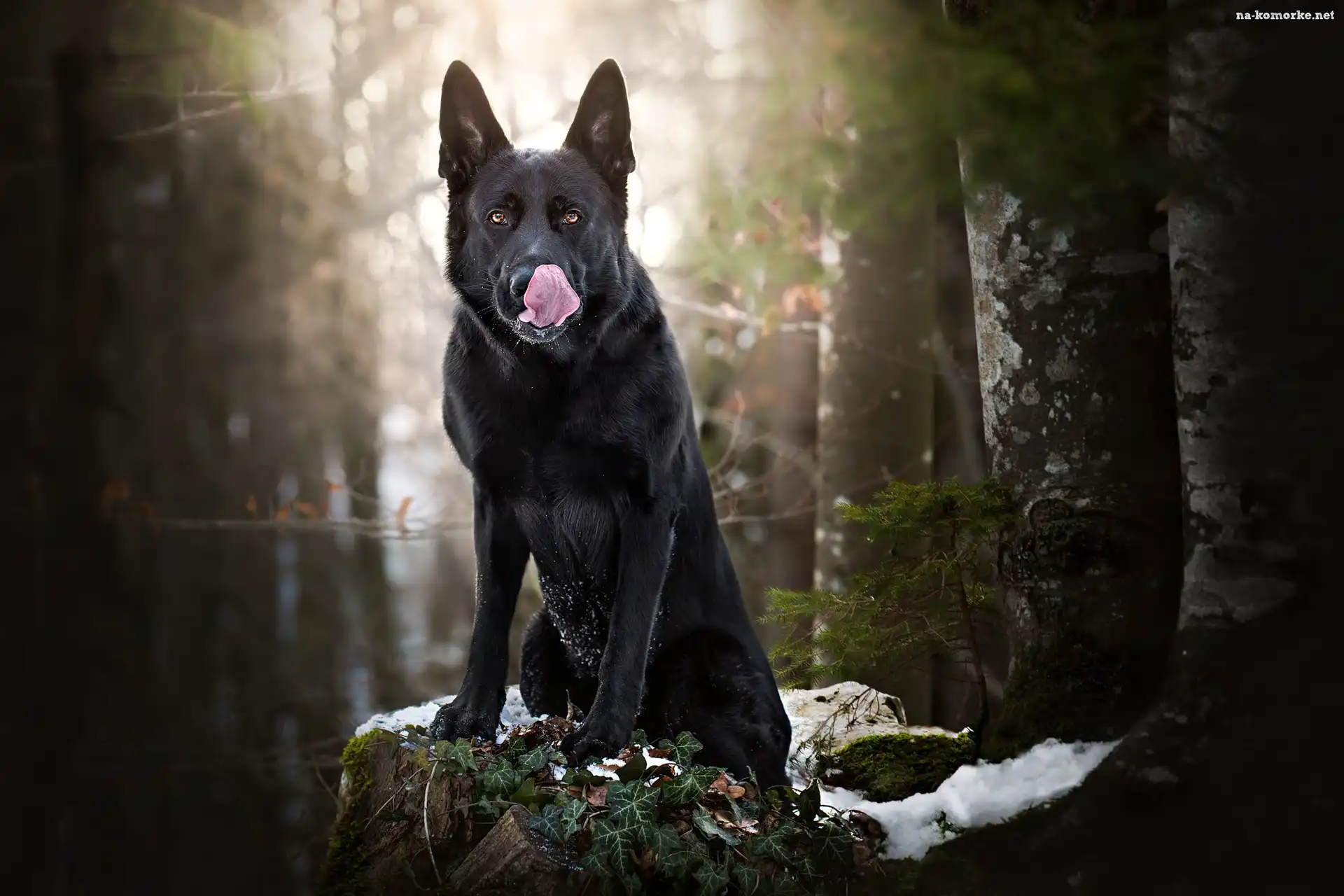 Siedzący, Rośliny, Bluszcz, Owczarek niemiecki, Jęzor, Las, Pień na Komórkę
