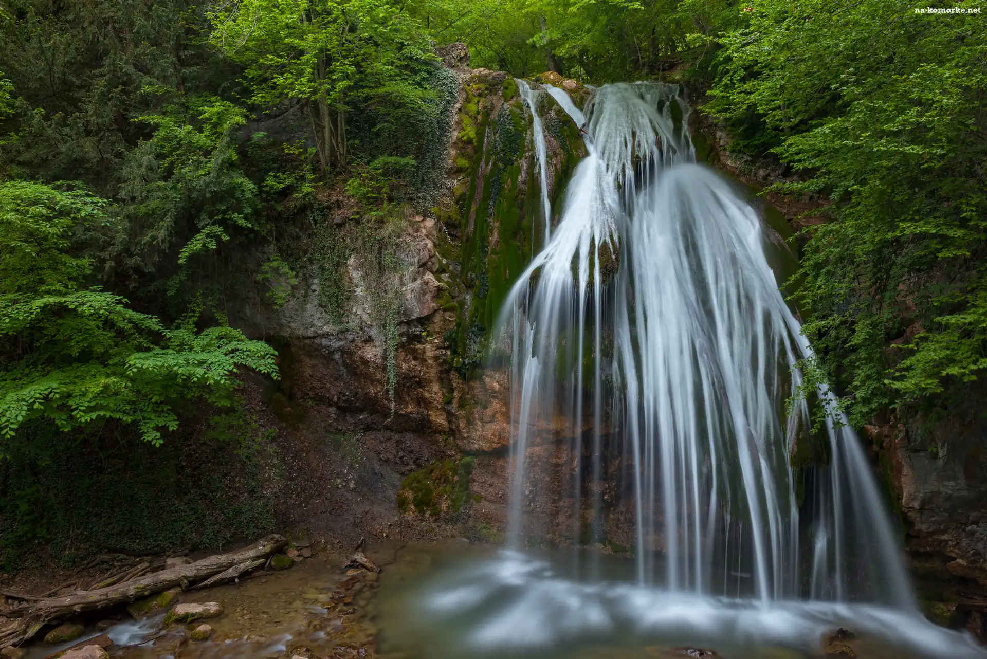Rośliny, Las, Rzeka, Wodospad, Skały na Komórkę