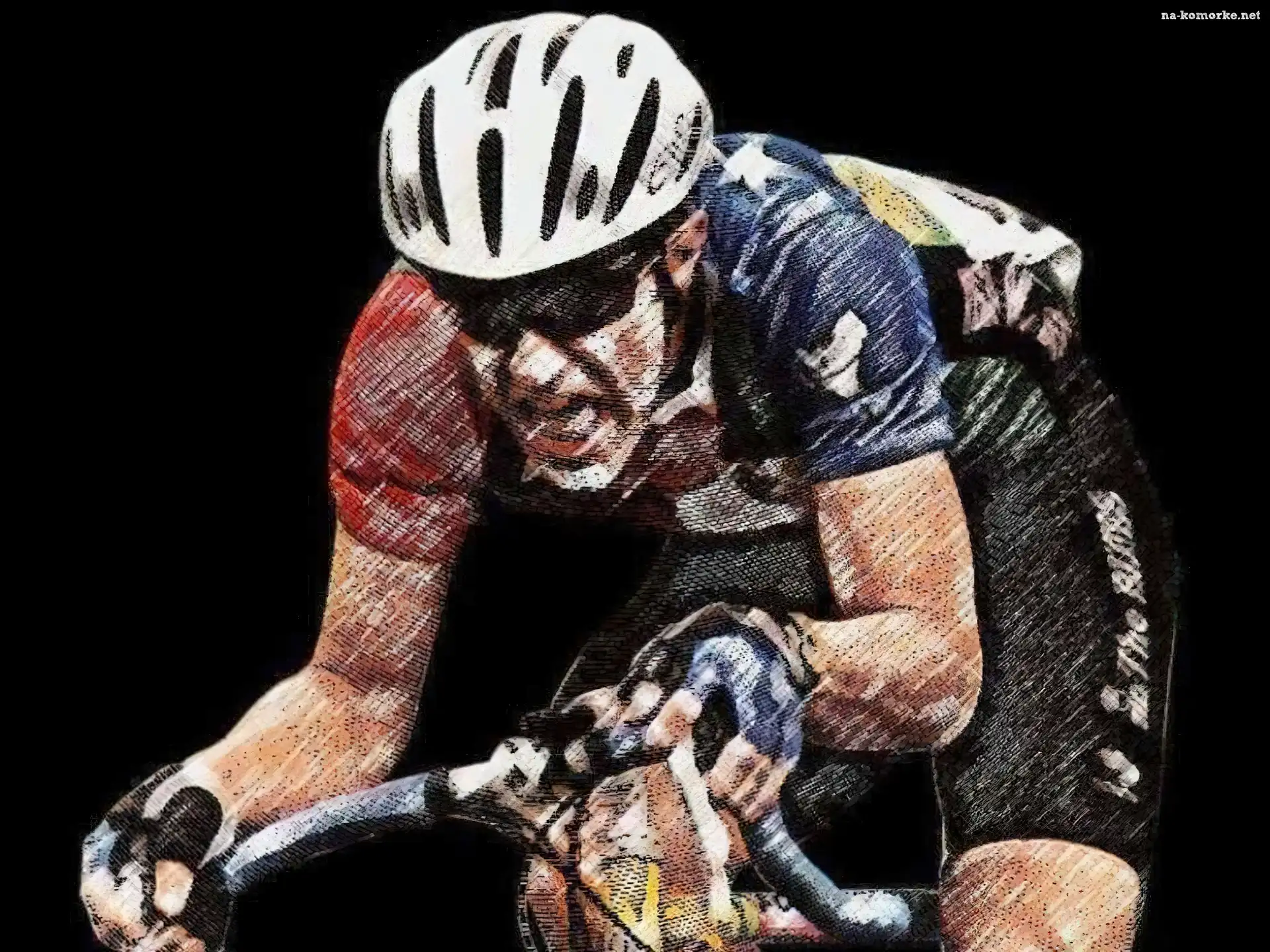 Rower, kierownica, kolarz, kask na Komórkę