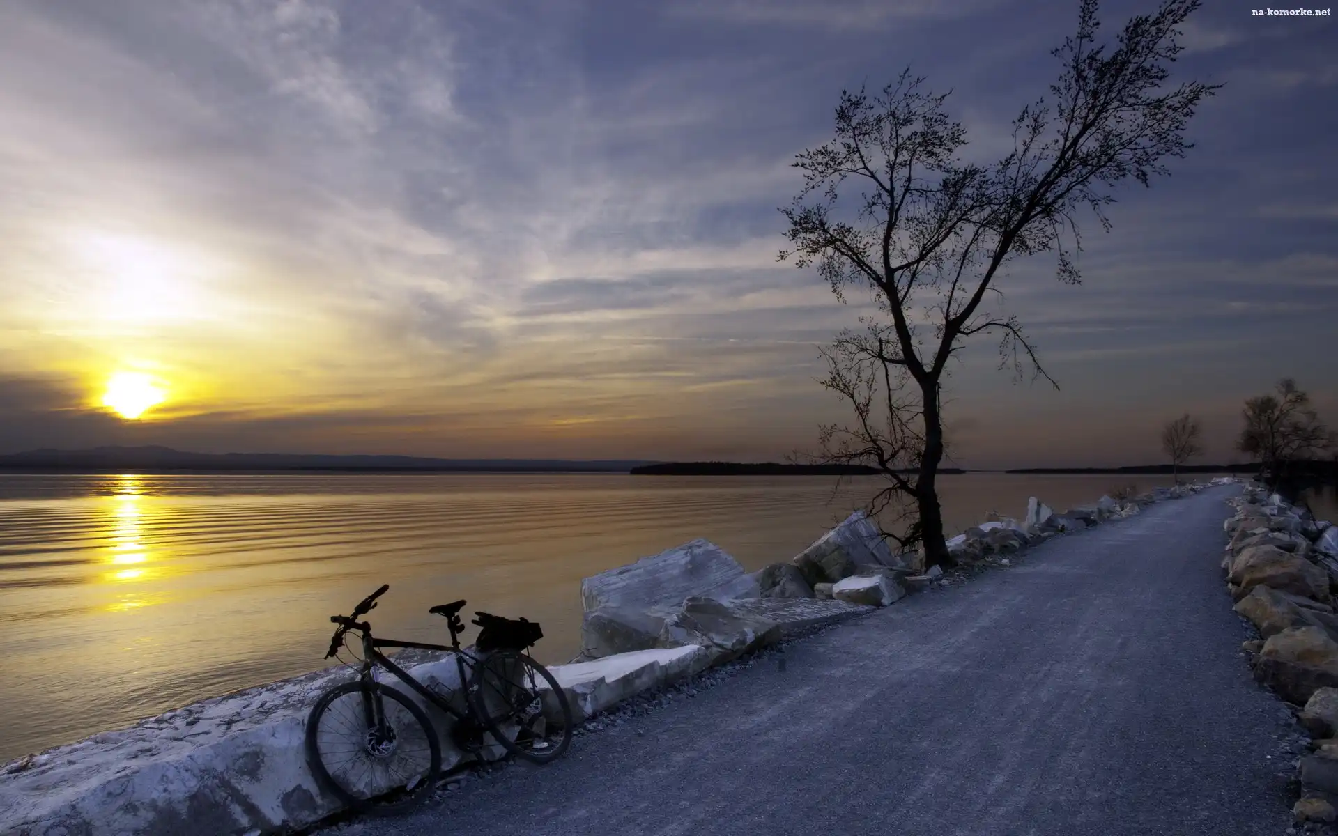 Rower, Droga, Jezioro, Zachód, Słońca na Komórkę