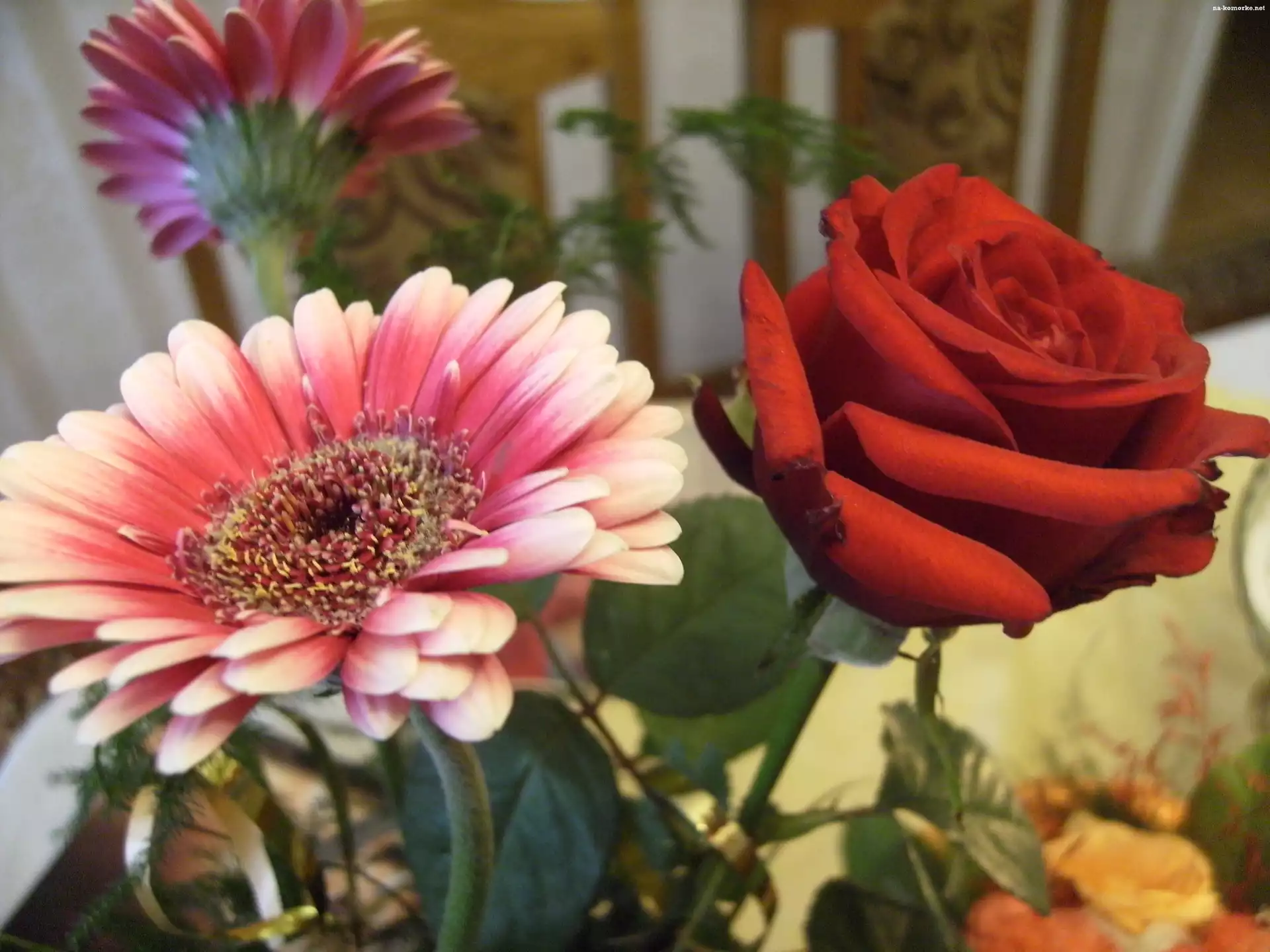 Bukiet, Róża, Gerbera na Komórkę