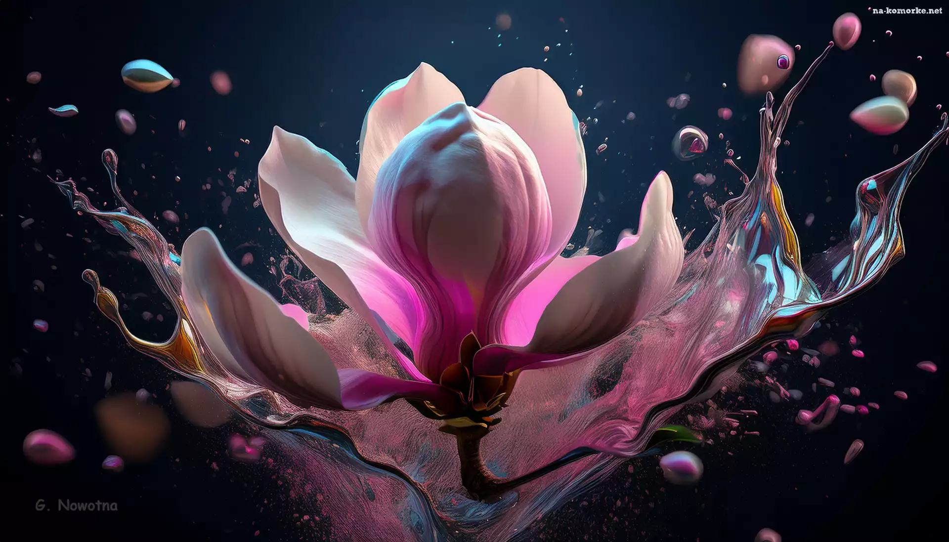 Farba, Grafika, Magnolia, Rozbryzgi na Komórkę
