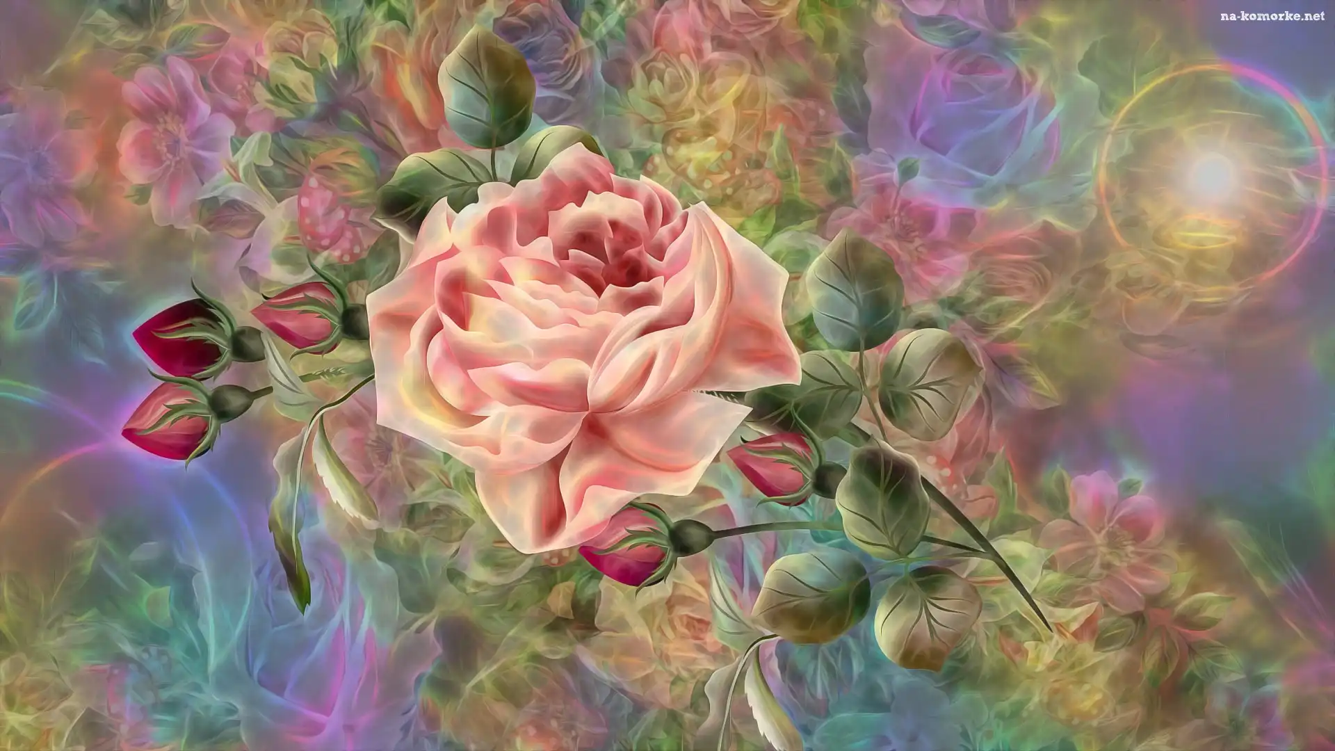 Kwiaty, Pąki, Liście, Róże, Grafika 2D na Komórkę