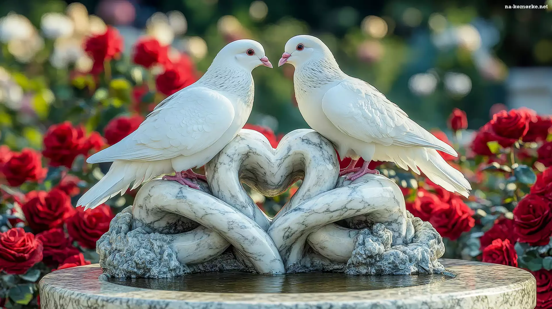 Poidło, Czerwone, Dwa, Róże, Gołębie, Ptaki, Białe na Komórkę