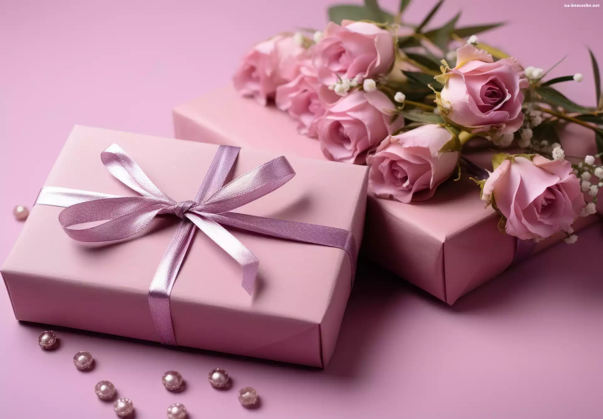 Kwiaty, Różowe, Dwa, Róże, Prezenty, Koraliki, Pudełka na Komórkę