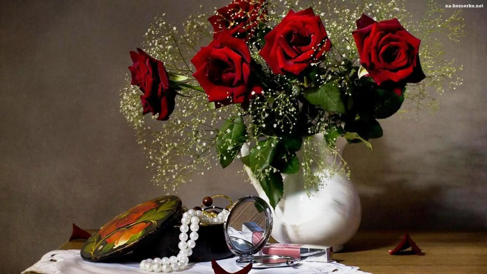 Róże, Lusterko, Flakon, Korale na Komórkę