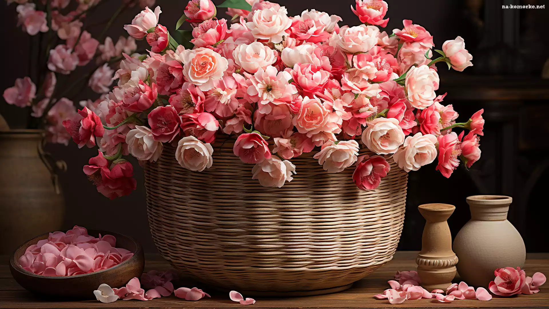 Kosz, Naczynia, Różowe, Róże na Komórkę