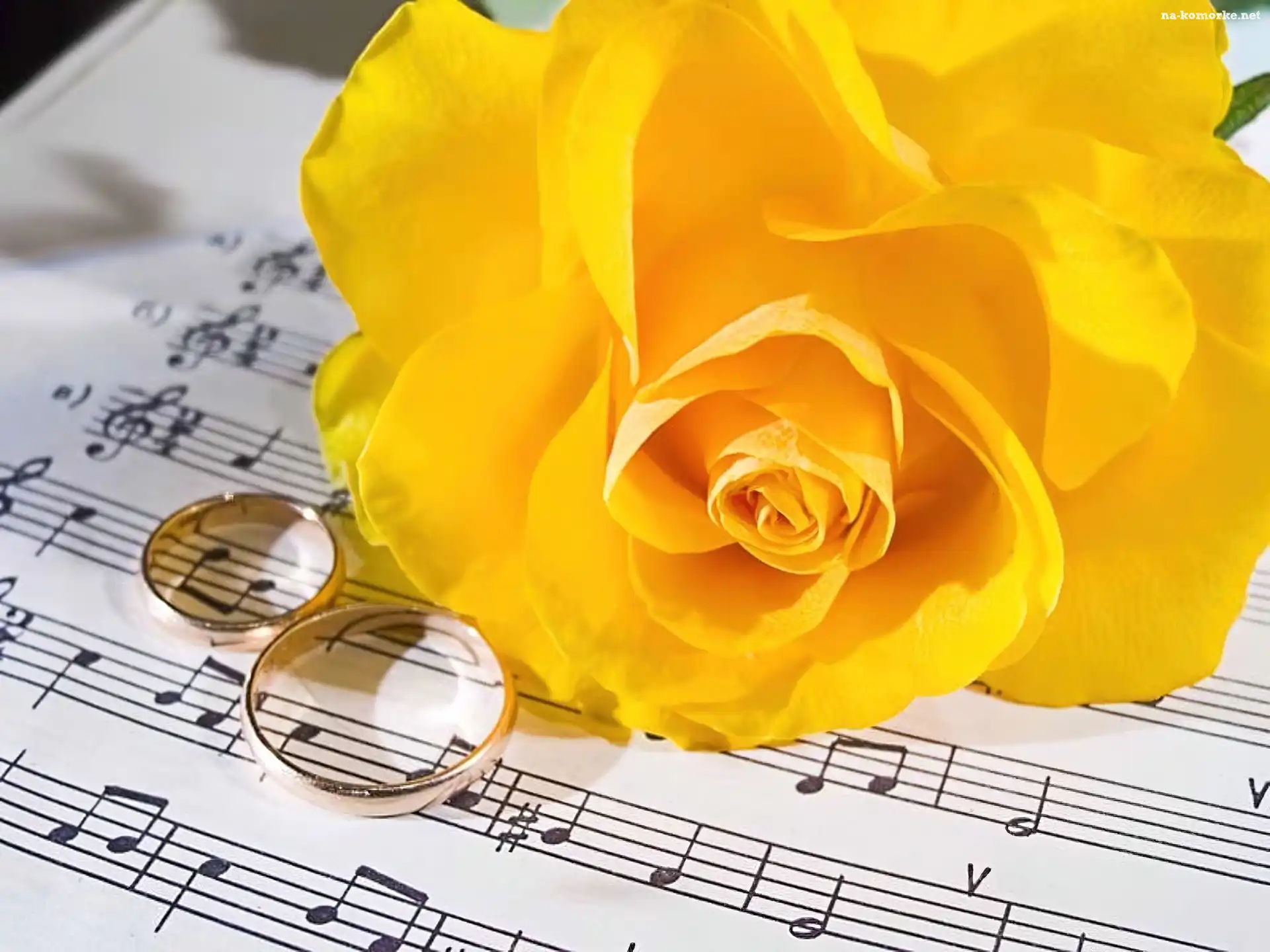 Żółte, Nuty, Róże, Obrączki na Komórkę