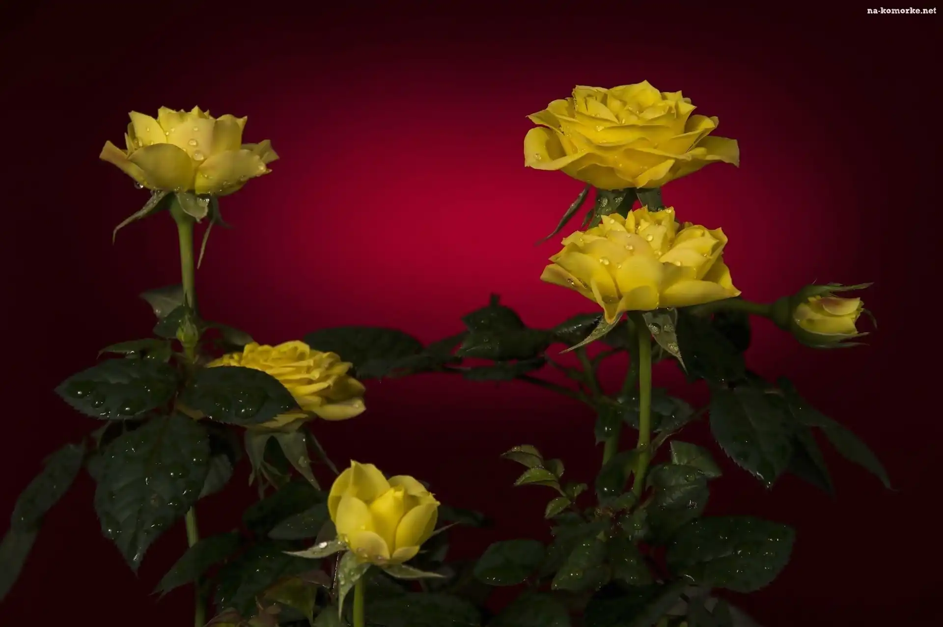 Żółte, Rosy, Róże, Krople na Komórkę
