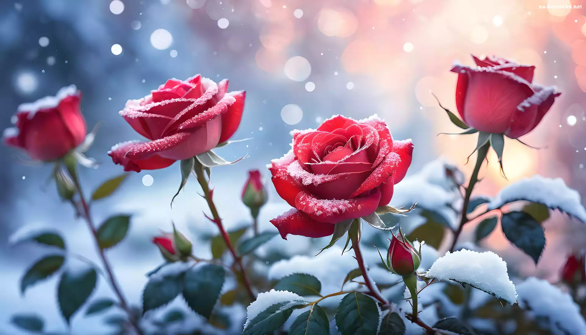 Śnieg, Grafika, Czerwone, Róże na Komórkę