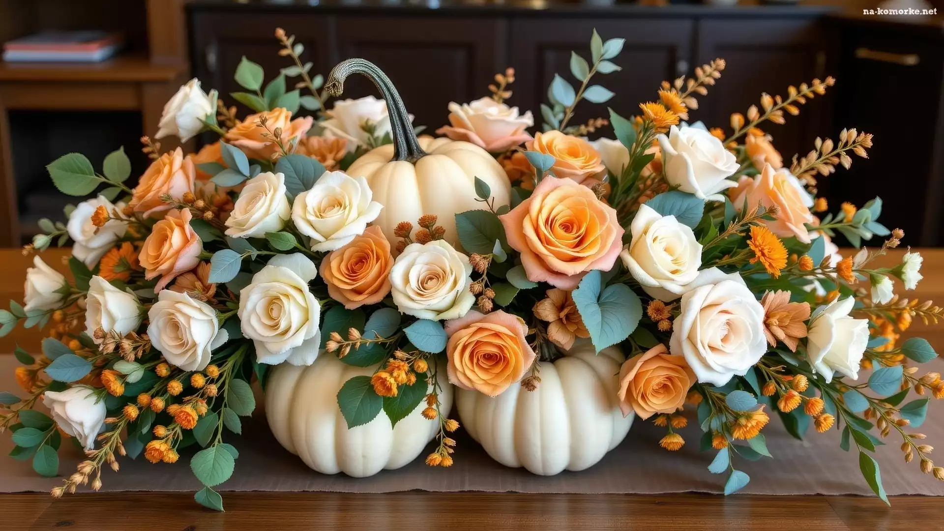 Białe, Pomarańczowe, Trzy, Róże, Dynie, Kwiaty, Białe na Komórkę