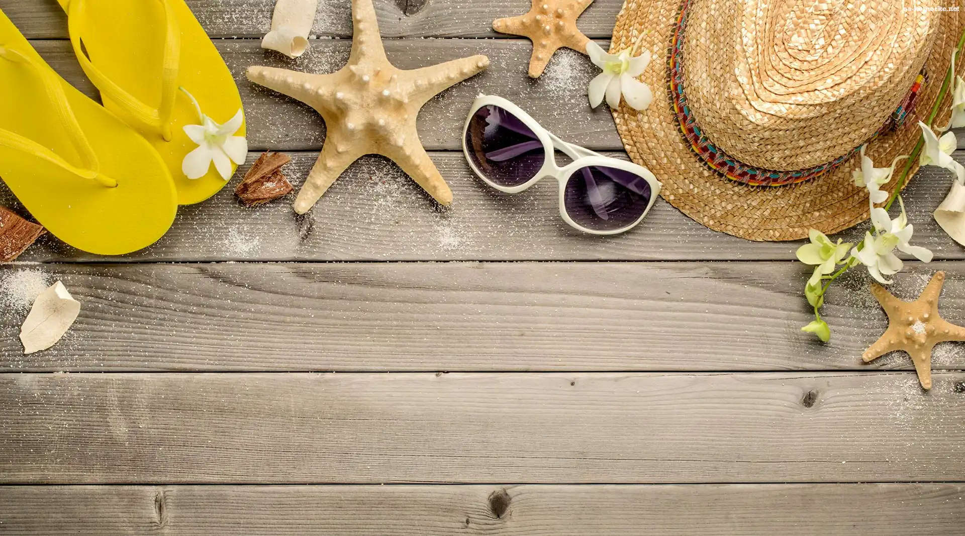Rozgwiazdy, Okulary, Kapelusz, Kompozycja, Klapki, Lato na Komórkę