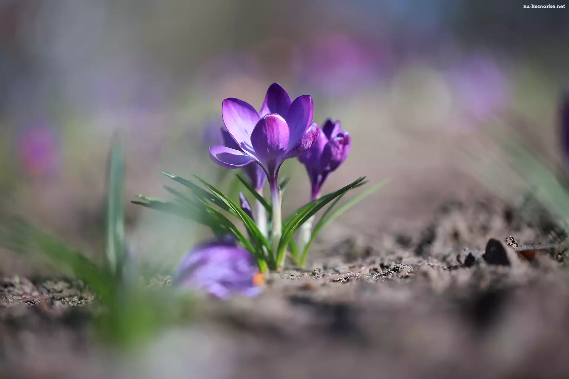 Krokusy, Kwiaty, Fioletowe, Rozkwitające na Komórkę