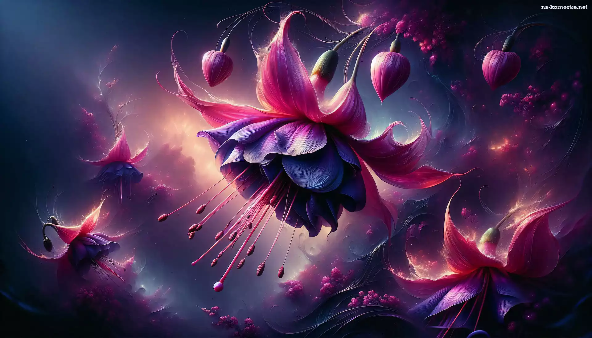 Fuksje, Grafika, Kwiaty, Rozkwitnięte na Komórkę