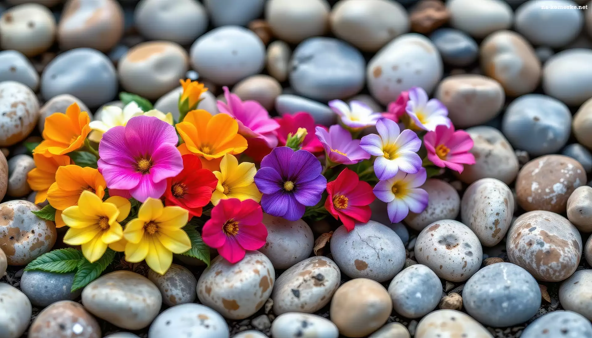 Kwiaty, Kamienie, Kolorowe, Rozkwitnięte na Komórkę