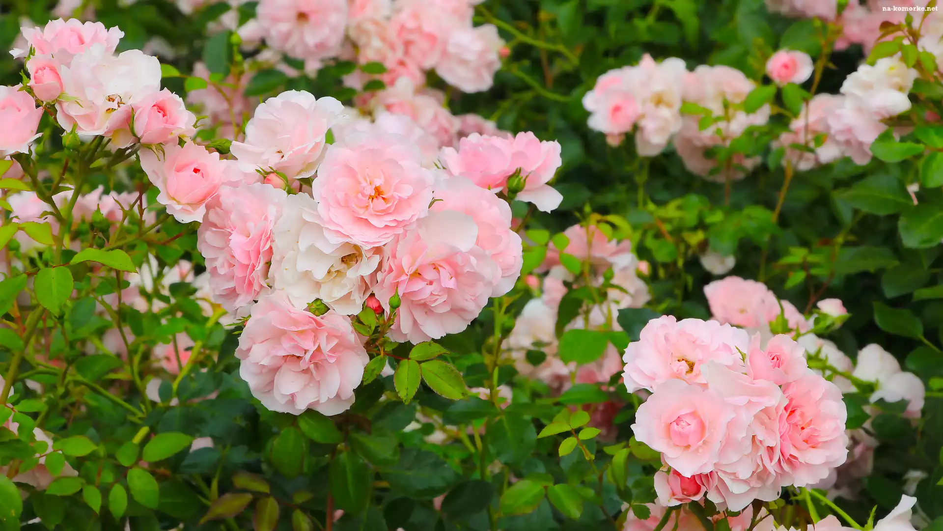 Róże, Liście, Jasnoróżowe, Rozkwitnięte na Komórkę