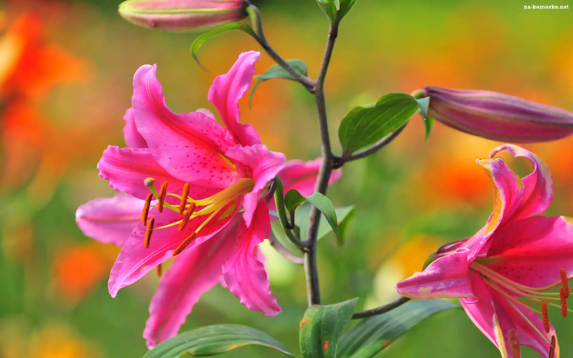 Rozmycie, Lilia, Pąki, Kwiat, Liscie na Komórkę