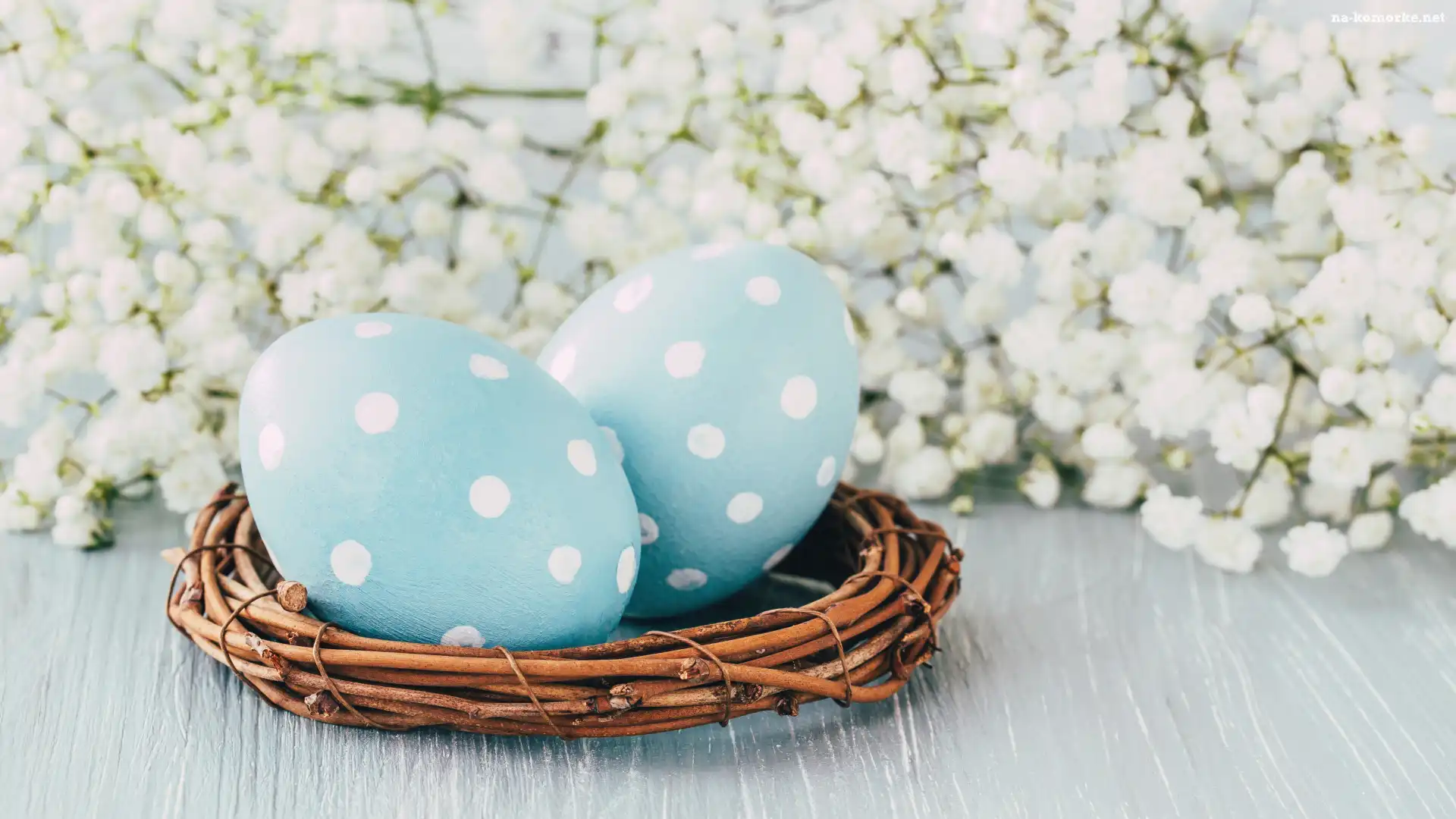 Dwie, Rozmycie, Pisanki, Wielkanoc, Niebieskie, Wiklinowy, Wieniec, Kwiaty na Komórkę