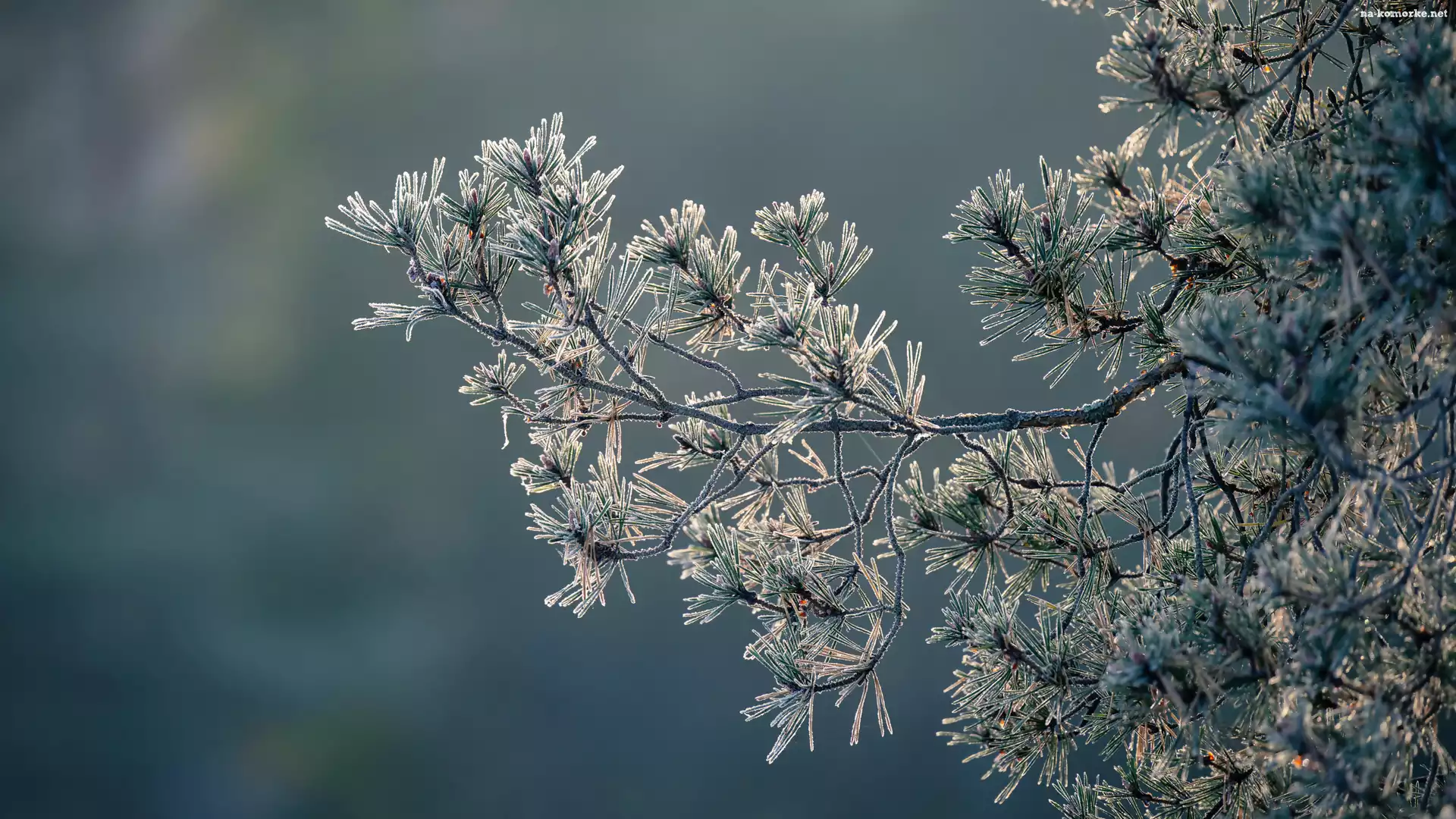 Szron, Rozmyte tło, Gałązka, Sosna na Komórkę