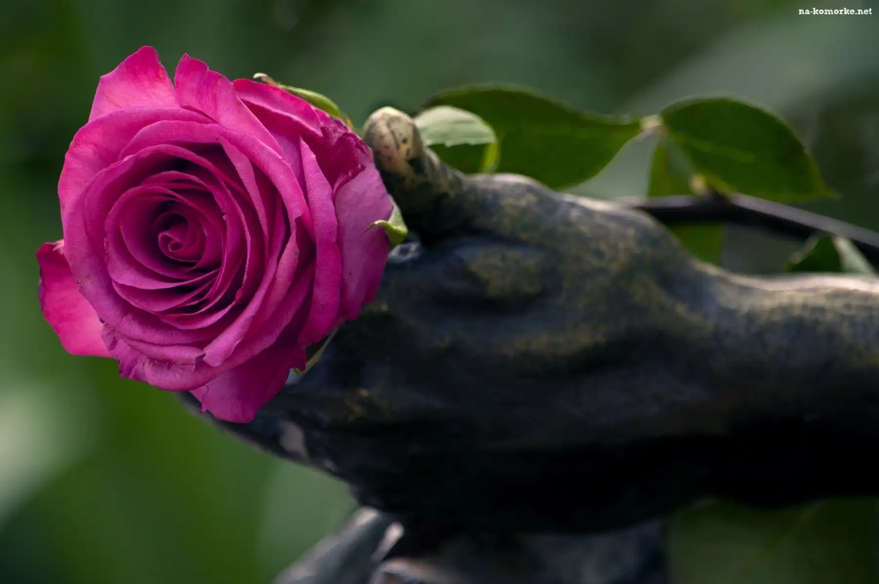 Różowa, Posąg, Róża, Dłoń na Komórkę