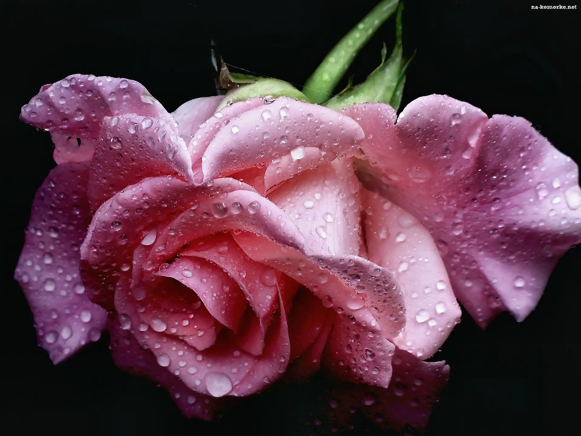 Różowa, Wody, Róża, Krople na Komórkę