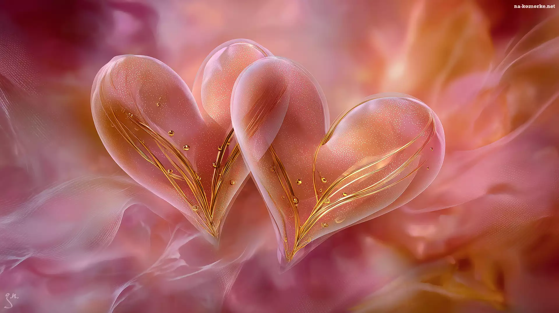 Dwa, Serca, Wzory, Różowe, Grafika AI na Komórkę