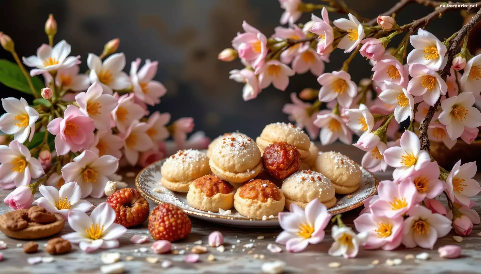 Ciasteczka, Różowe, Drobne, Talerz, Kwiaty na Komórkę