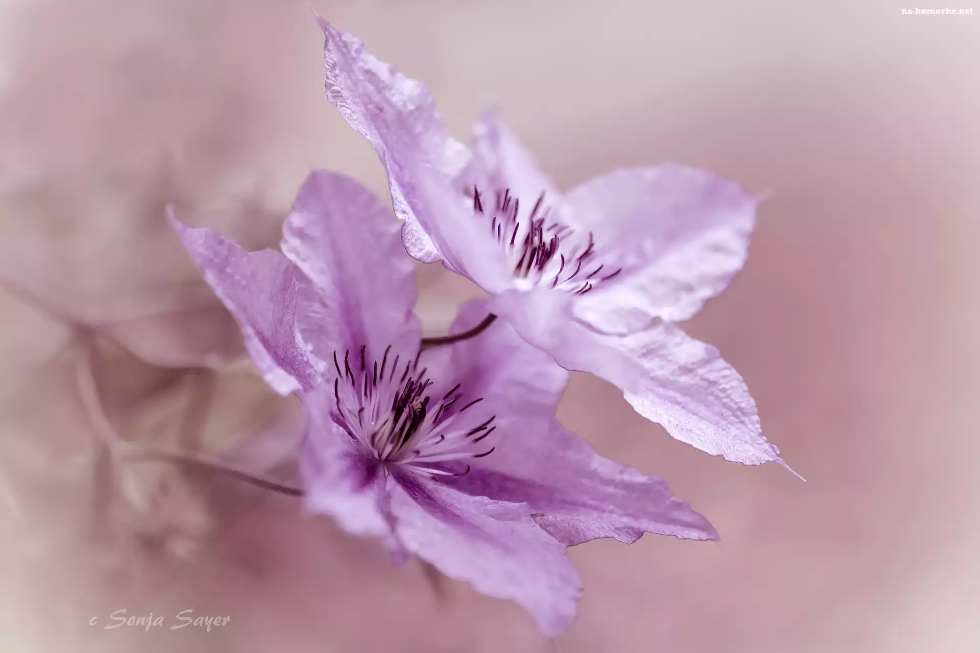 Różowe, Kwiaty, Clematis, Dwa, Powojnik na Komórkę