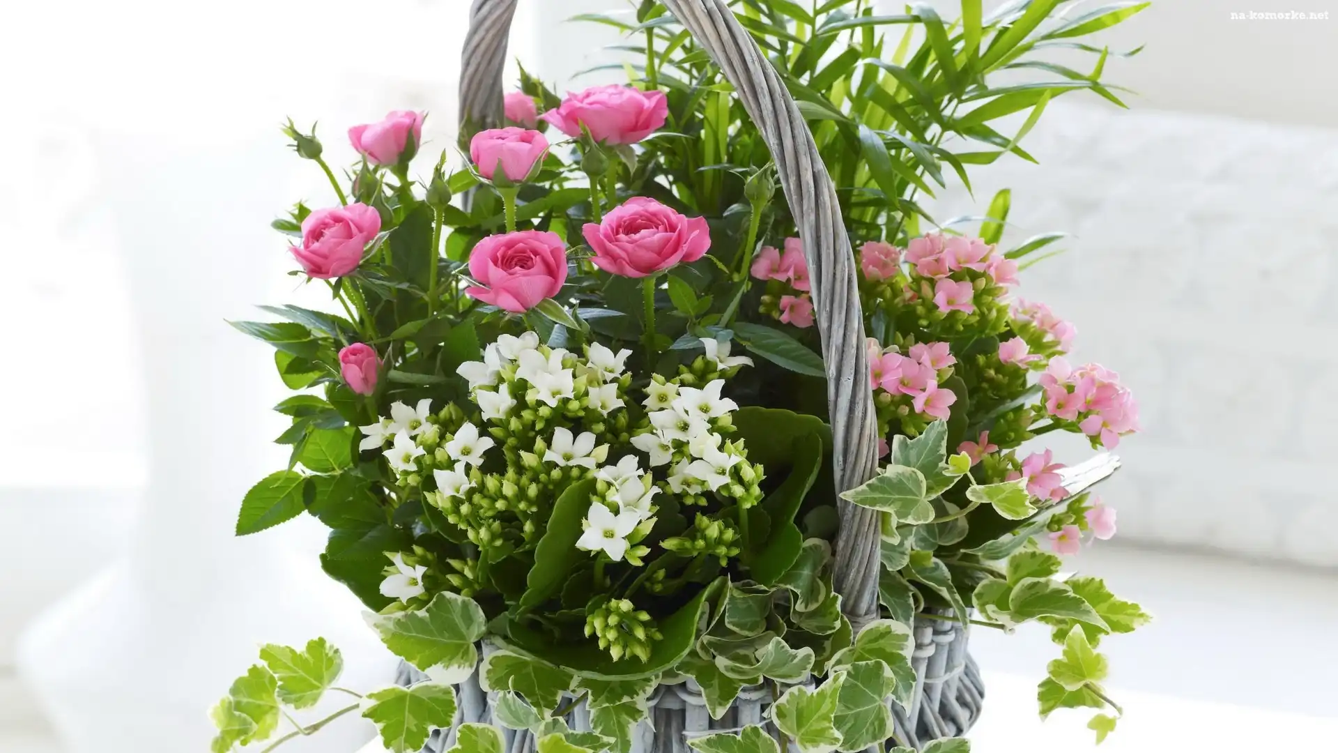 Różowe, Kwiatów, Kosz, Bluszcz, Kalanchoe, Róże na Komórkę