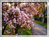 Kwitnące, Różowe, Kwiaty, Gałązki, Droga na Komórkę