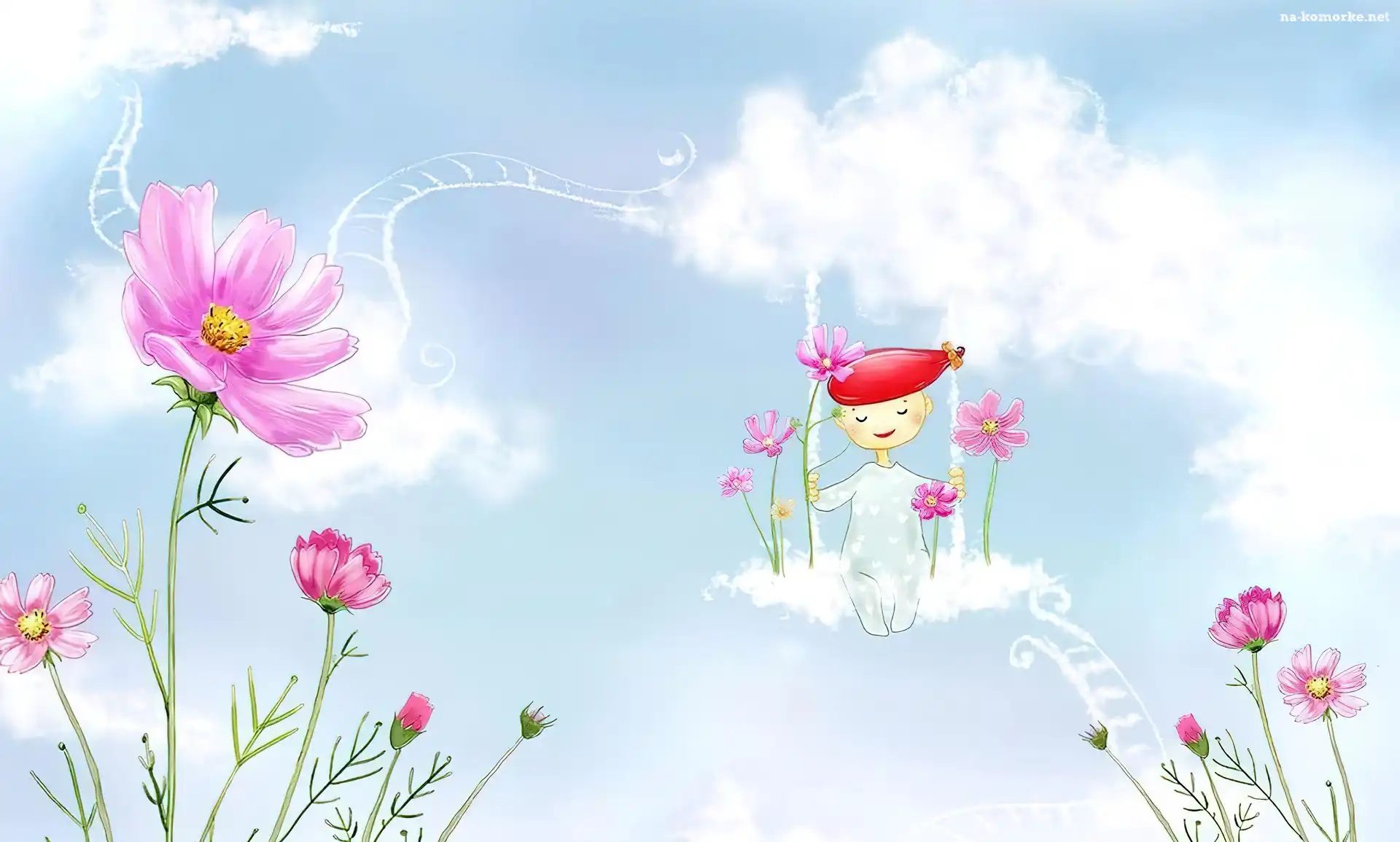 Różowe, Dziecko, Kwiaty, Huśtawka na Komórkę