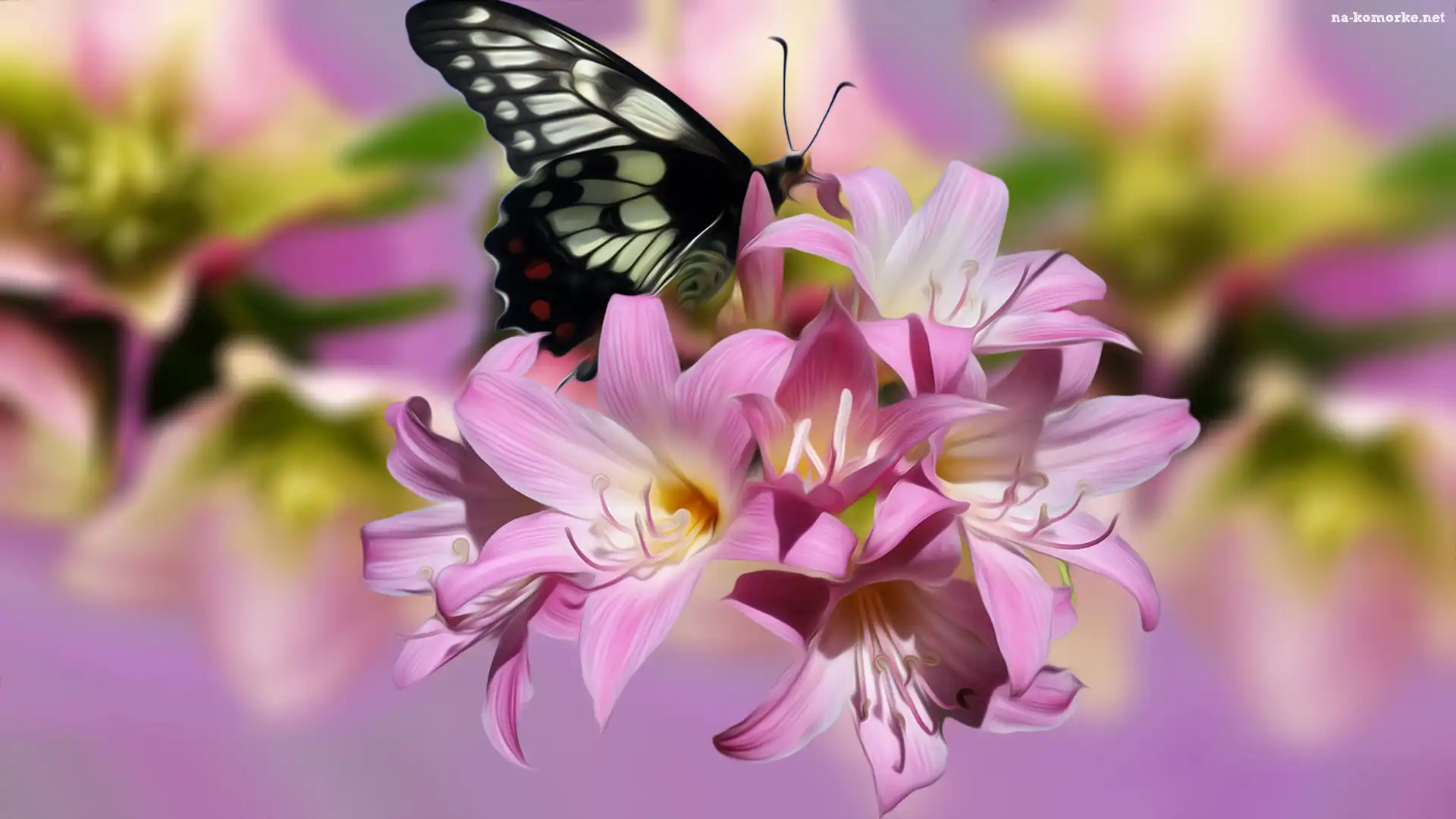 Różowe, Grafika, Kwiaty, Motyl na Komórkę