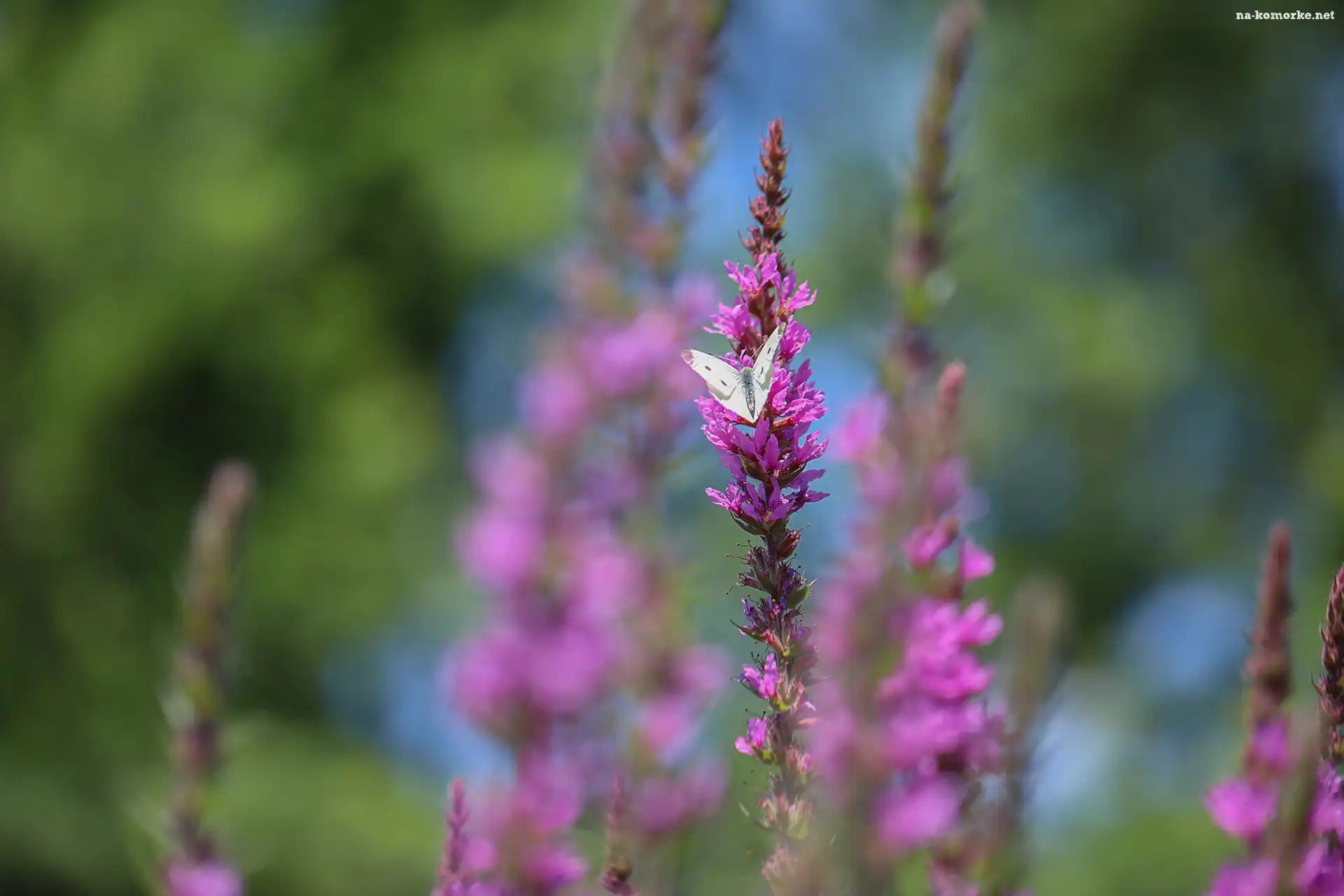 Różowe, Bielinek kapustnik, Kwiaty, Motyl na Komórkę